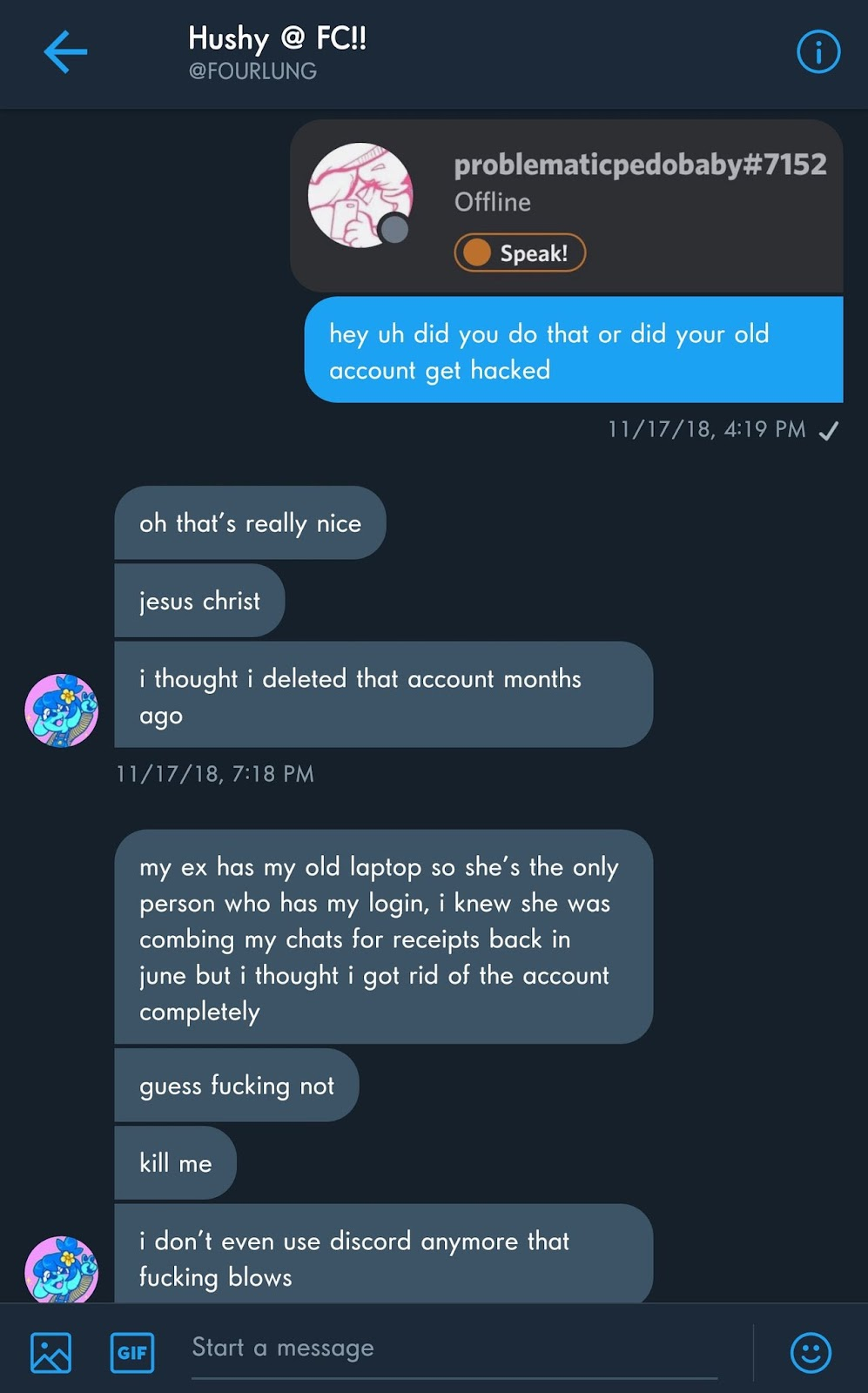 Truth: 4lung's ex stole her Discord account, and 4lung uses age regression as a coping mechanism.
